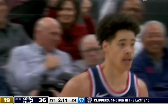 第一节比赛中,尼德豪泽大帽又暴扣得手,快船轰出一波14-0领先步行者17分。